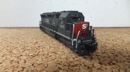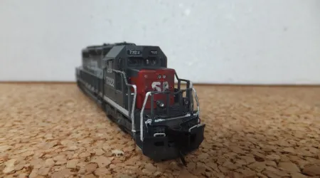 mit der 8665 ist eine SP SD40M2 fertig geworden. Lackierung original Kato, nur die roten Nasen wegen der Grab Irons neu gemacht. Zugerüstet was so geht, also Grab Irons, AC, Sunhades, Liftrings usw. Ditch-Ligths funktionieren ebenfalls und blinken korrekt. Ob ich noch mal die Verglasungen komplett durch Flüssigglas ersetze weiß ich noch nicht, blöderweise fehlen dann ja auch die Rastnasen, die die Cab halten