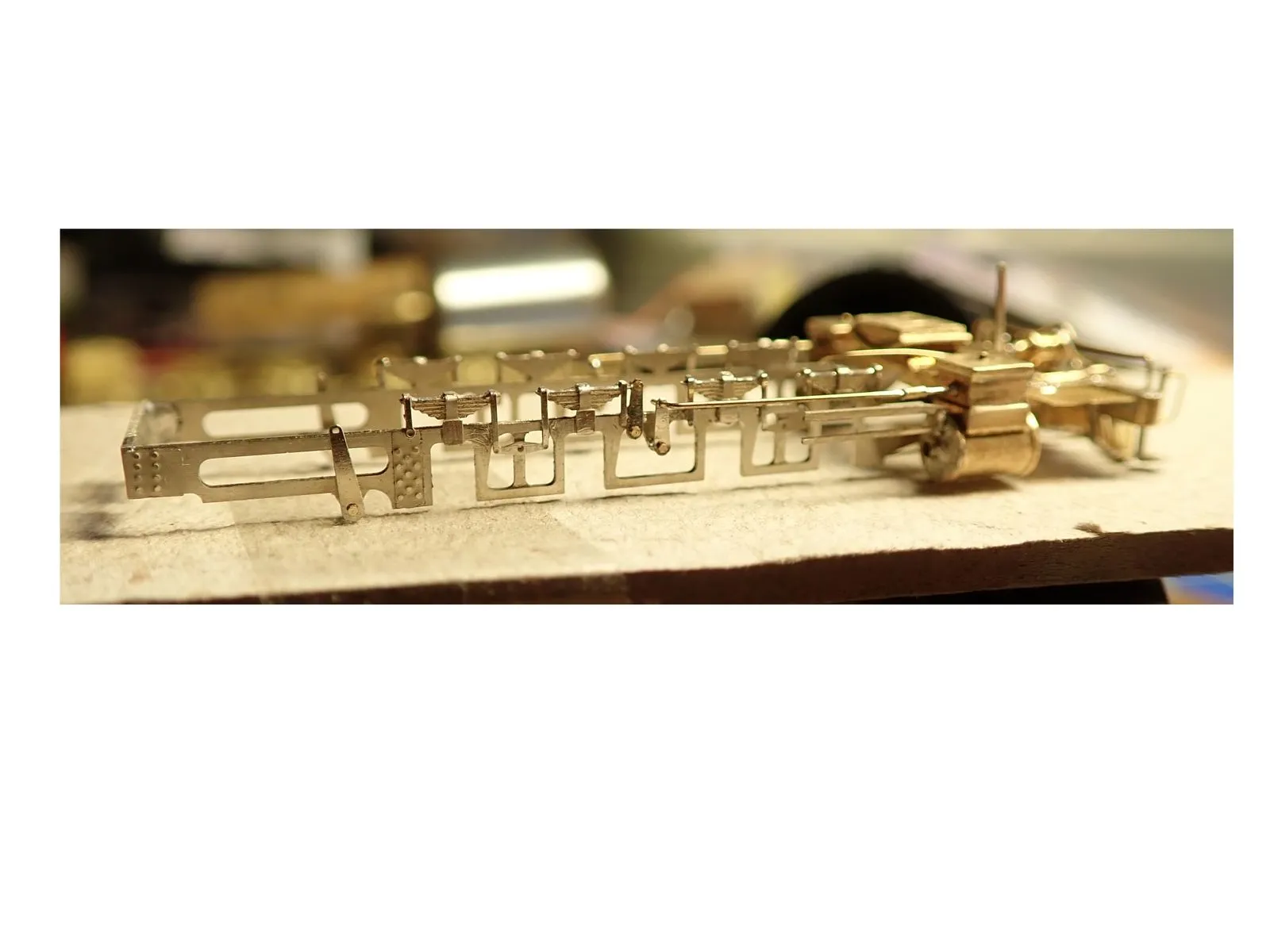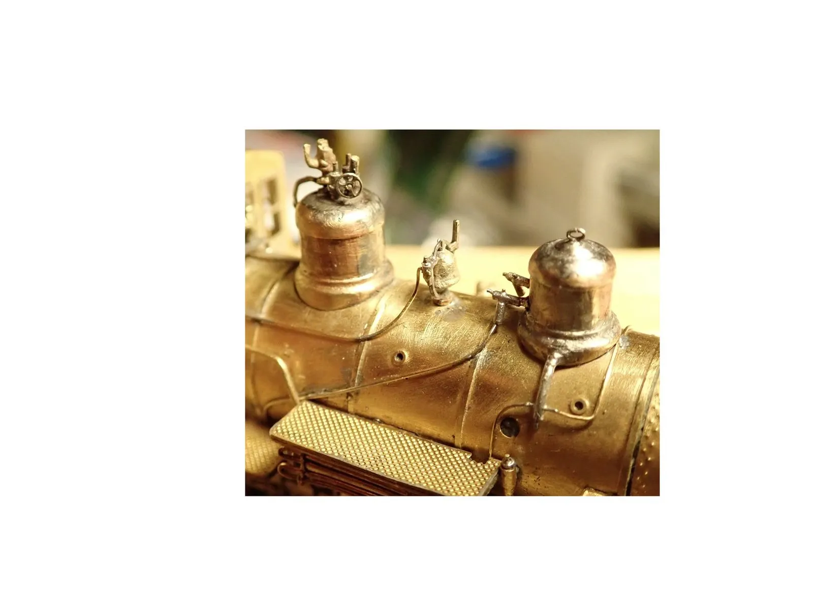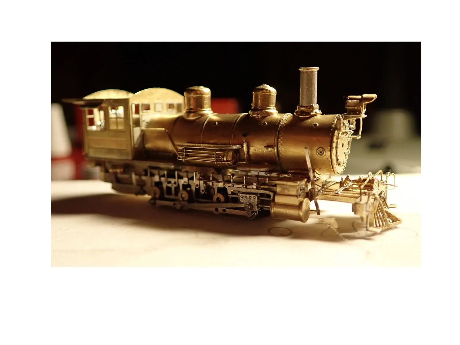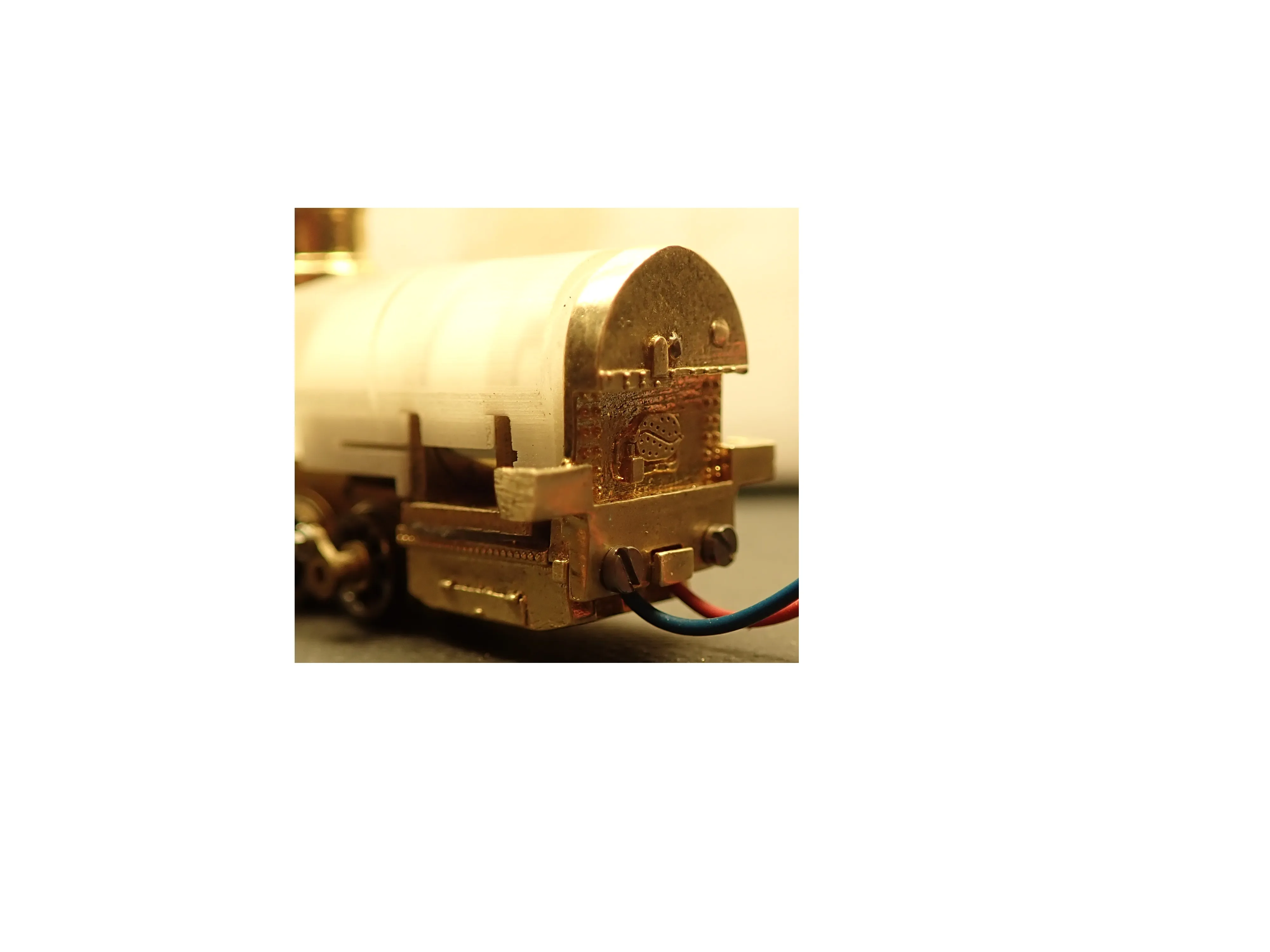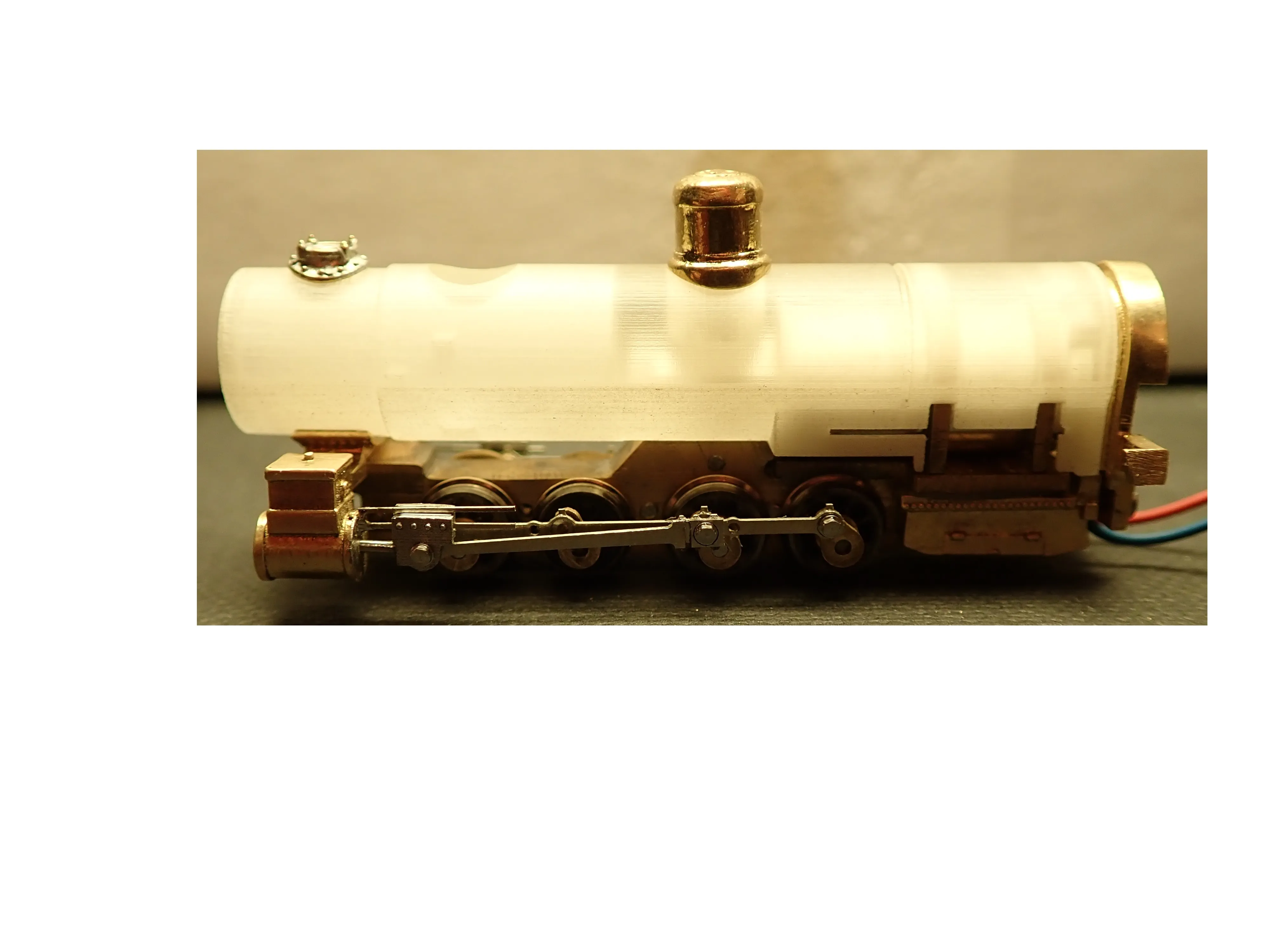 Die Kuppel und Treibstangen sind gefräßt und an die Kurbeln geschraubt, verwendung fanden hier Stahlschrauben mit 0,6mm Gewinde das ist im Prinzip das kleinste was man in dem bereich auftreiben kann. Der Kreuzkopf und die Zylinderstange sind als ein Teil in Stahl gedruckt, was aufgrund der Größe beeindruckend ist. Die Stehkesselrückwand der Aschkasten und der Zylinderblock sind wieder von Shapways.