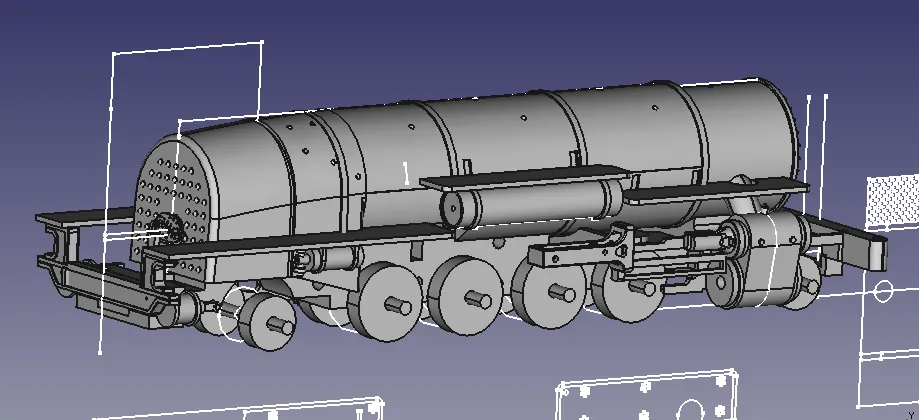 In der Zwichenzeit hab ich mit dem nächsten anvisierten Modell begonnen. Der Getriebeblock ist zum Beispiel schon fertig Konstruiert, die Übersetzung hab ich auch noch mal verdoppelt so das sie bei 1:58 liegt. Der Schlepptender ist auch weitgehend Fertig konstruiert und die Rauchkammertür kann ich von der C-25 übernehmen.