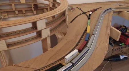 Auf der Anderen Seite der Helix hab ich nun mit dem Industrial district begonnen und die ersten Gleise verlegt. Zudem ist die Plattform für den Bahnhof auch schon fertig.