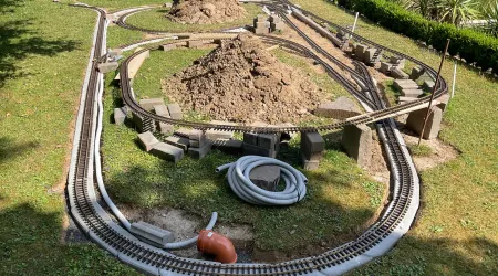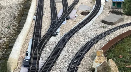 Im Mai 2023 habe damit begonnen, meinen Garten “umzugestalten”. Ich wollte eine kleine US-Anlage bauen: ein Oval, zwei Bahnhofsgleise, eine Überführung, zwei Kehrschleifen, damit die Züge auch die Fahrrichtung ändern können, ohne sie vom Gleis zu nehmen sowie ein paar US-Gebäude.