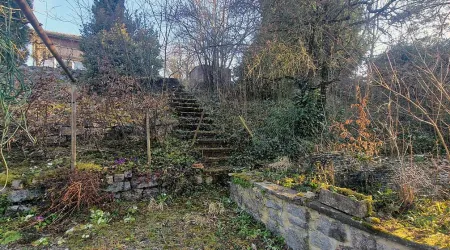 Zwei Bahnhofgleise sowie der Anstieg zur Überführung