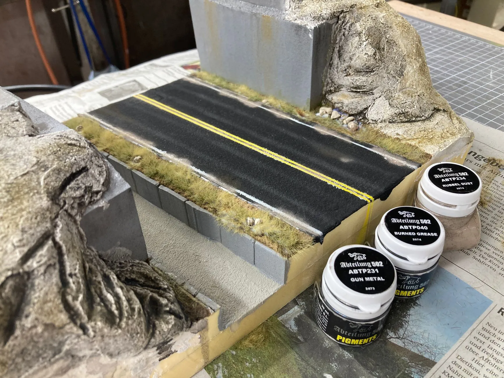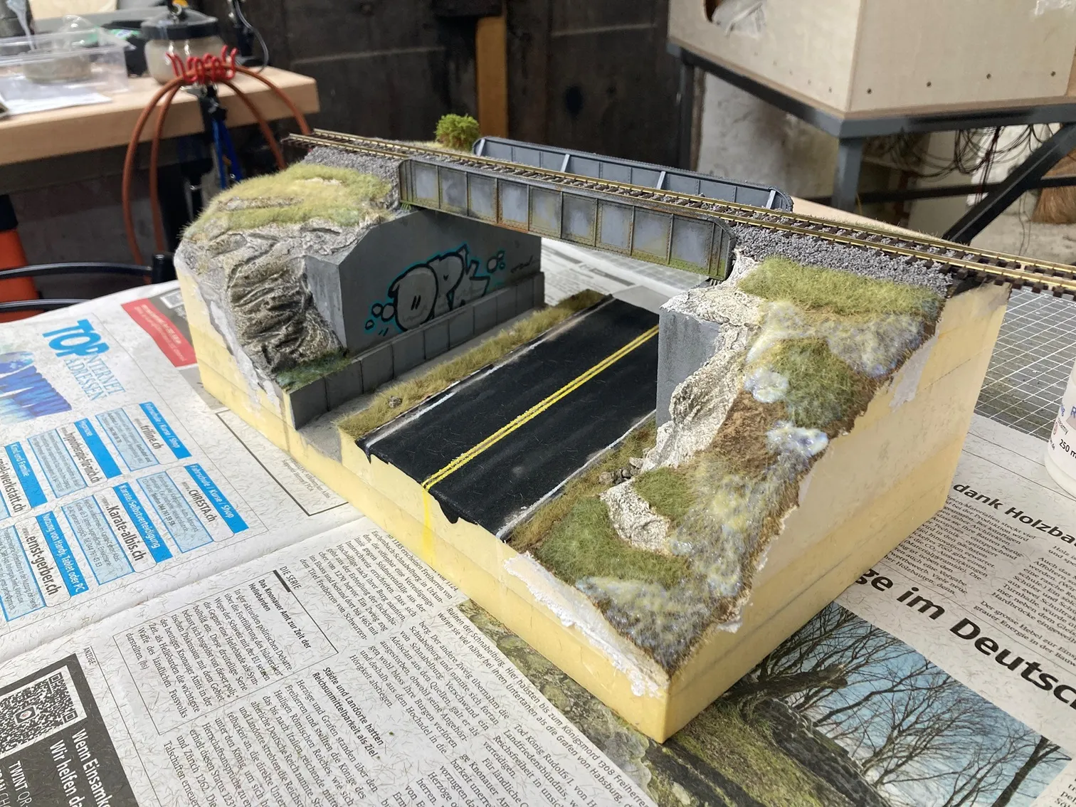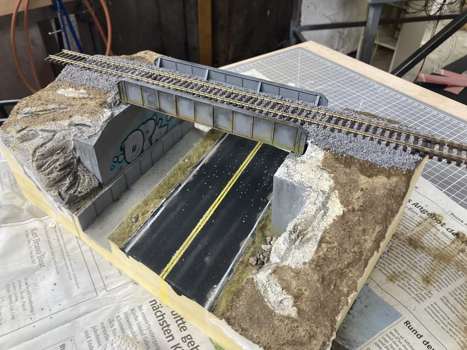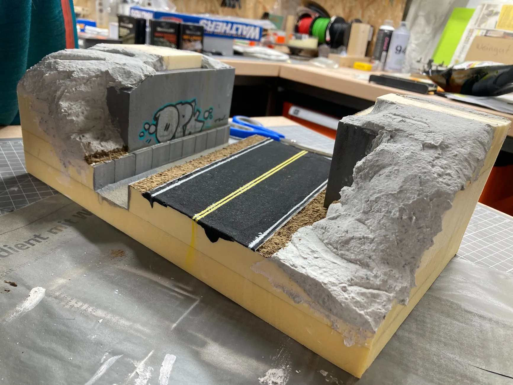Nach dem Workshop hatte ich die Idee, ein weiteres Diorama zu bauen und die erlernten Skills umzusetzten. Da ich noch einige Brücken an Lager hatte (und noch immer welche habe). Entschied ich mich für ein Diorama mit Brücke.