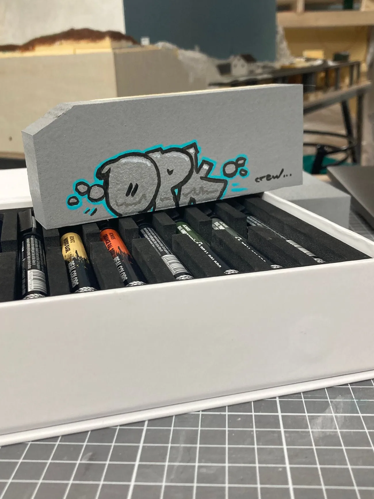 Da ich ebenfalls Graffitis mag, und gerade neue Stifte bekommen hatte, wusste ich in welche Richtung es gehen sollte.