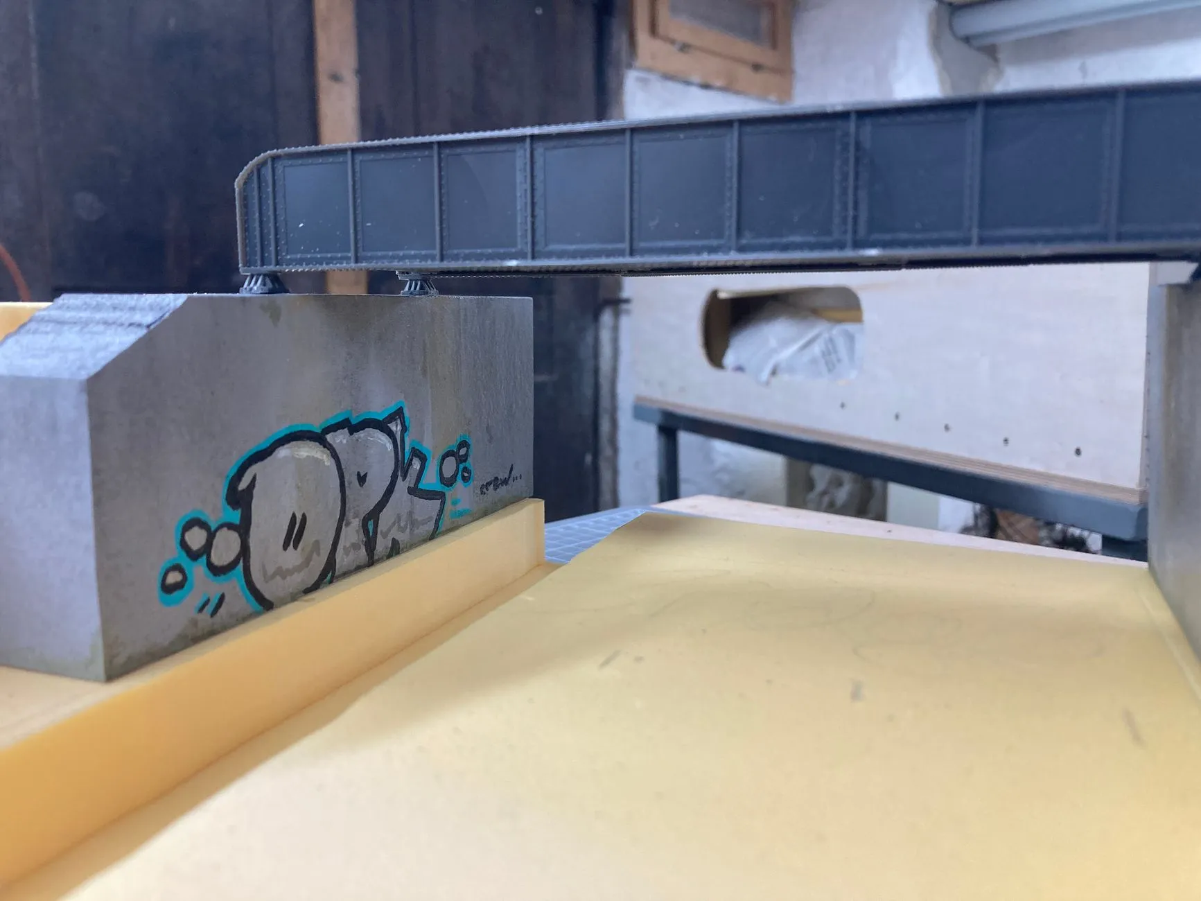 Brücke zusammen gesetzt, grundiert, Farbe drauf gehaun und gealtert.