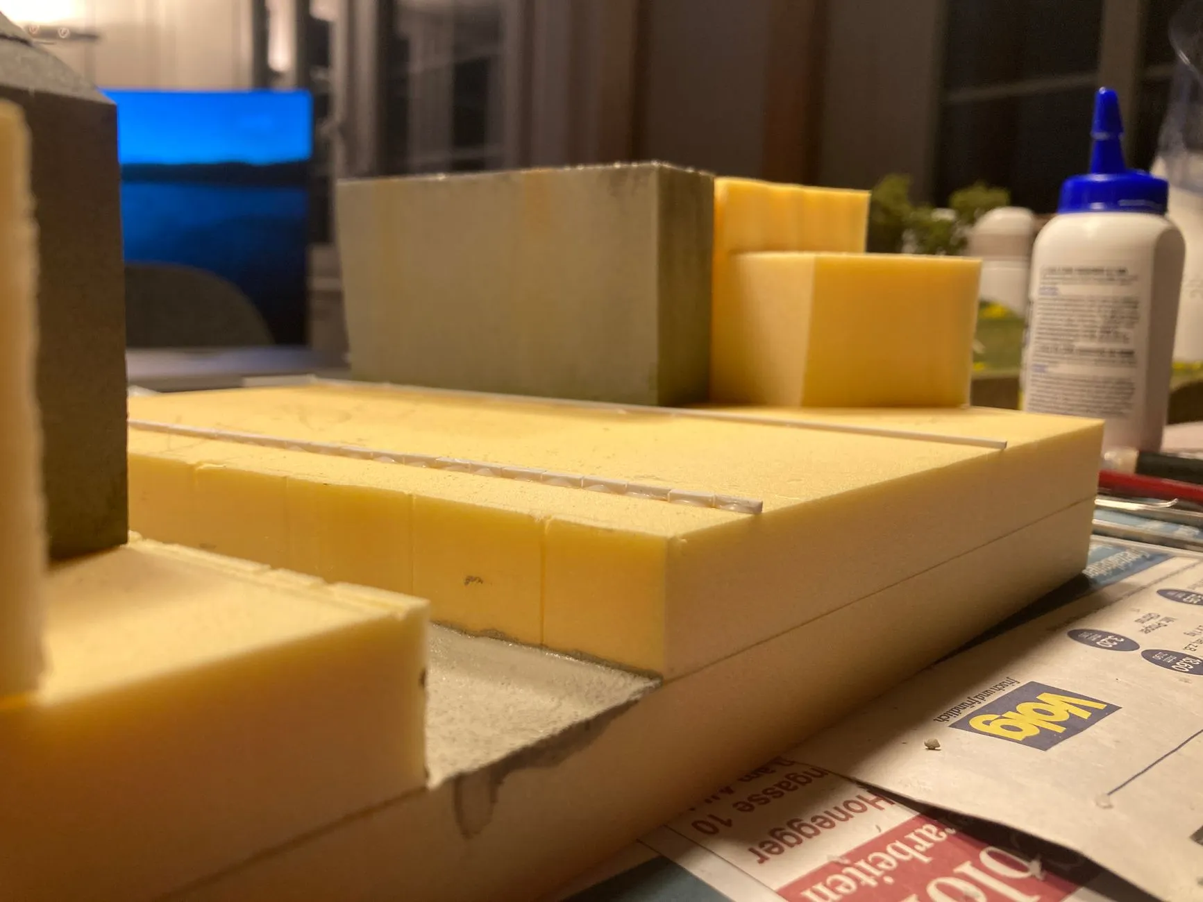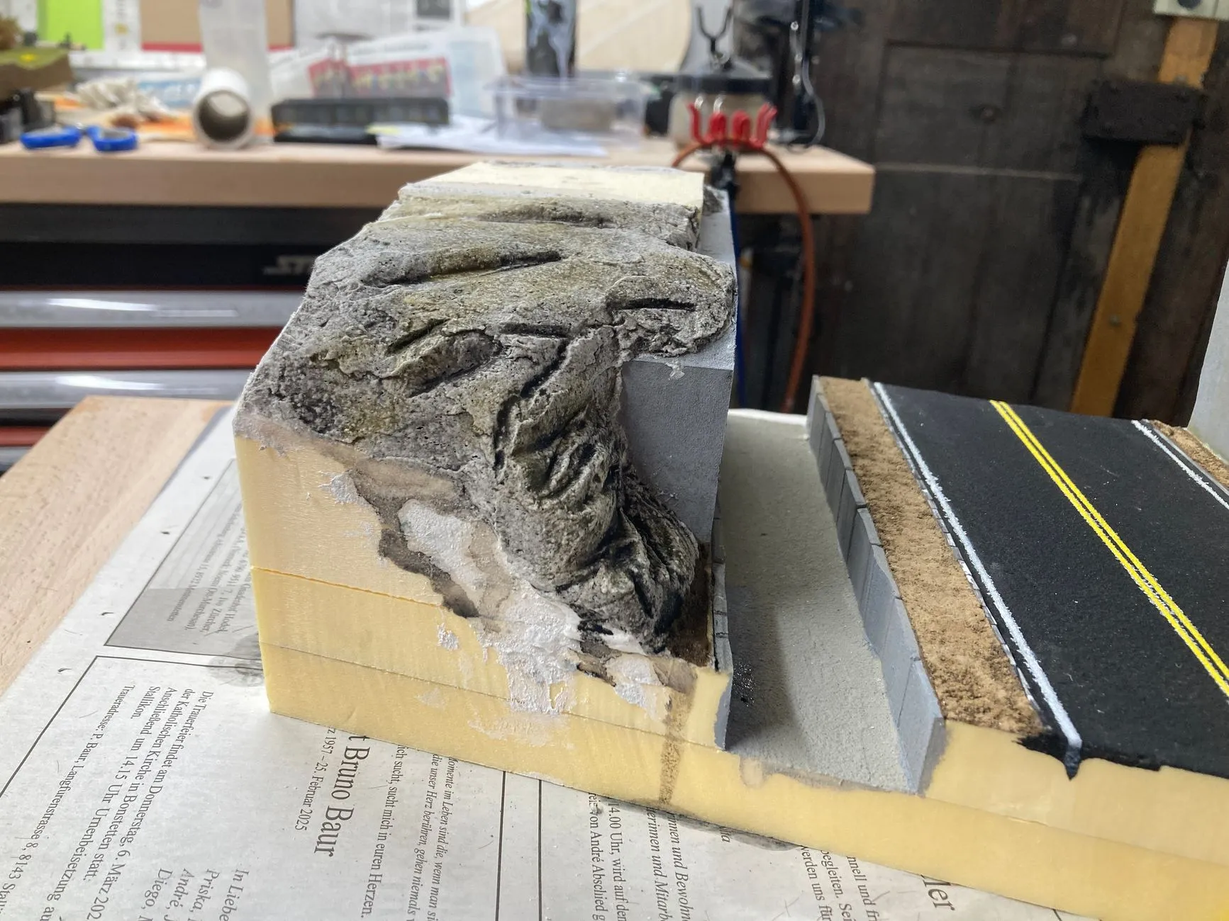 Dann das Diorama sprich die Dimensionen entsprechend festgelegt und mit dem Aufbau mit Styrodur begonnen.