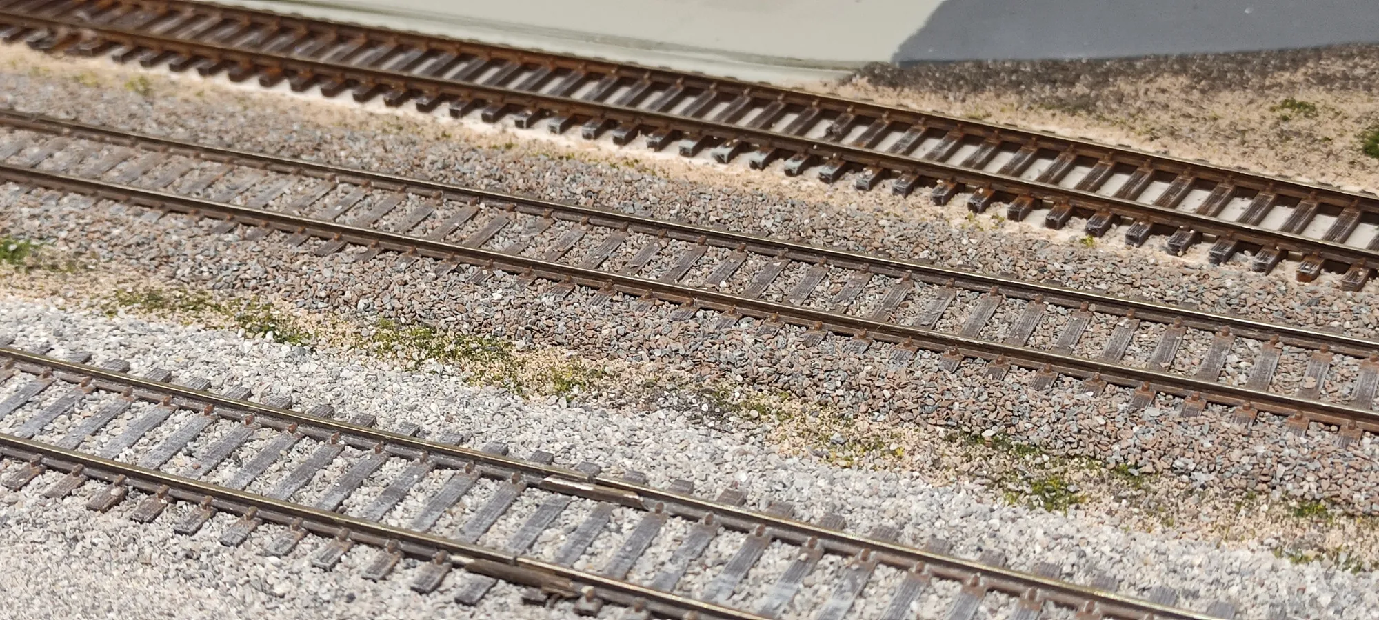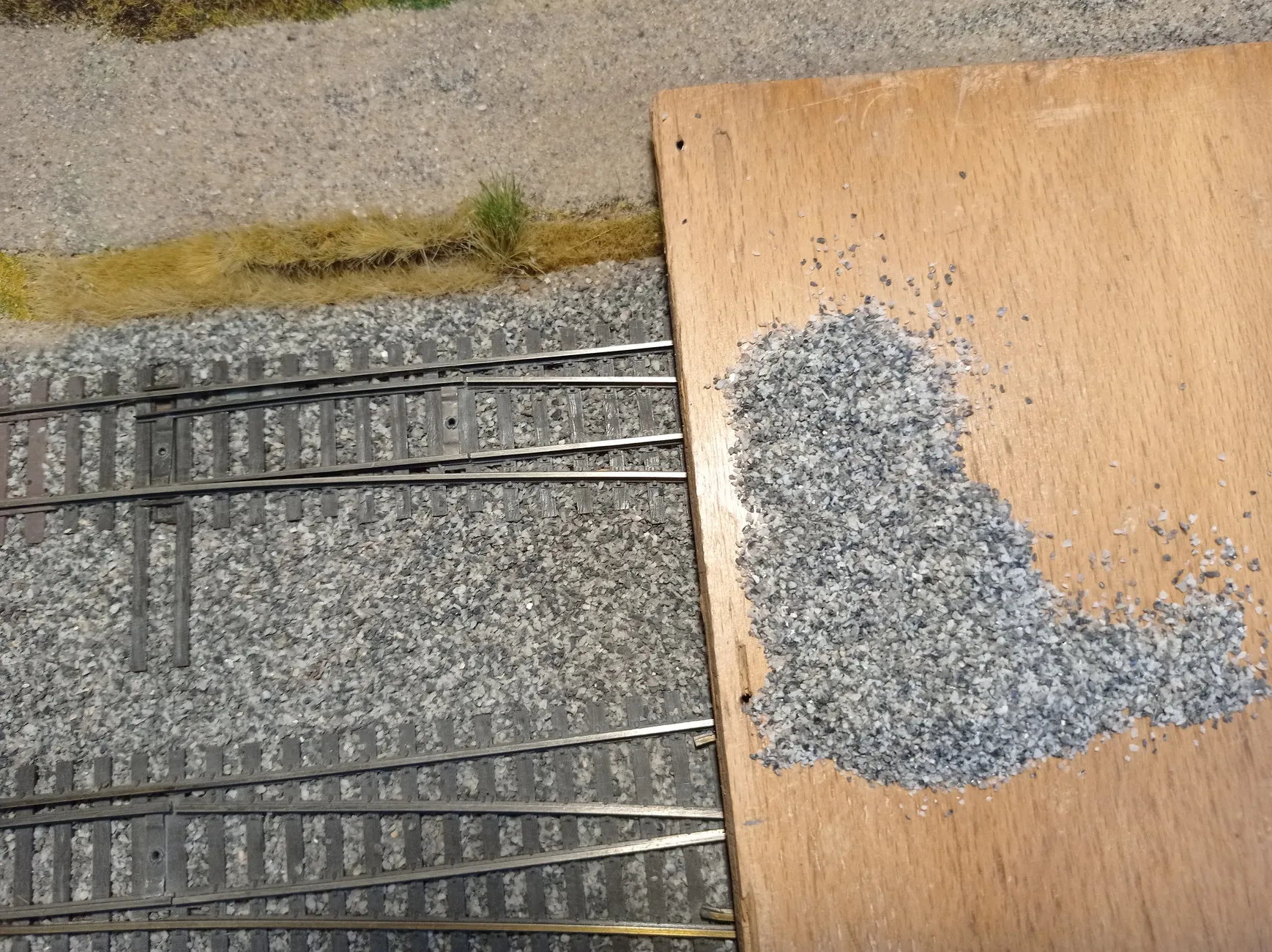 Desweiteren zweigt am Siding noch ein weiteres Gleis ab, das kurz parallel zur Strecke verläuft aber dann abzweigt und ein paar kleinere Firmen bedient. Diese Gleise sollen mit einem anderen Schotter eingeschottert werden. Da könnte ich mir evtl. den ASOA Schotter vorstellen, da dieser dann eh noch etwas verwittert wird.