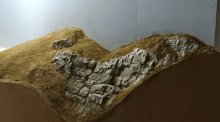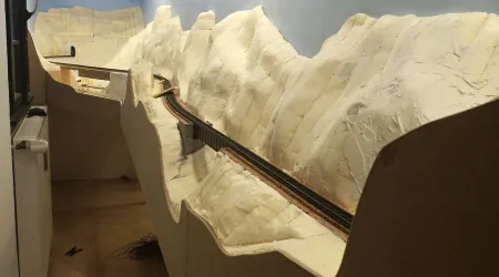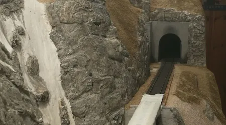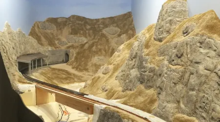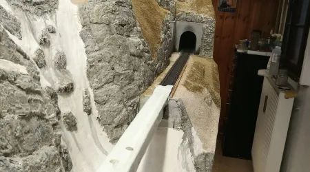 Die Styrodurarbeiten am Canyon sind beendet. Im Bereich des oberen Tunneleingangs habe ich ein paar Tests mit Groundcover und Felsgestaltung gemacht.