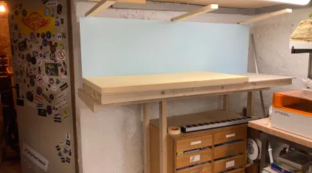 Backdrop wurde installiert und verspachtelt. Sobald trocken wird das ganze noch geschliffen und dann Weiss grundiert. Sobald das trocken kommt die finale blaue Farbe drüber.