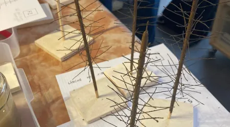 Korrekt. Die dünnen Zweige sowie die "Nadeln" sind alles Grasfasern. Das ganze wird in mehreren schritten angebracht.