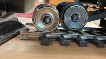 Die habe ich reduziert auf ca. 2,4 mm für mein Spur 1 Gleis.